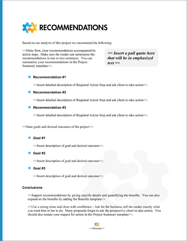 Your Proposal Packssummarize in the best of fashion all the finest practices for businesses in their dealings with customers, mostly because they remain focused on the client's solution, giving back to the customer the control over his project."