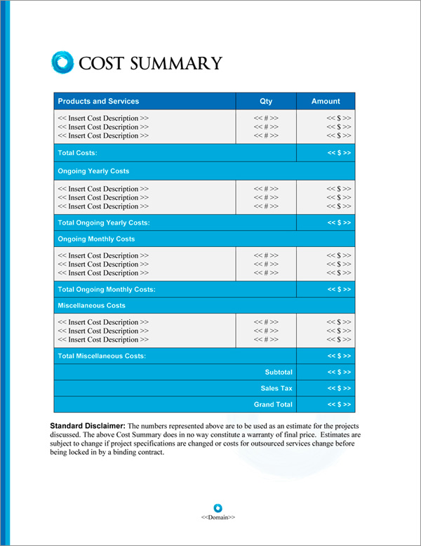 We added design elements in the Proposal Pack templates that you can easily change. You can change the size, shape, and color of the borders, fonts, tables, and other elements.