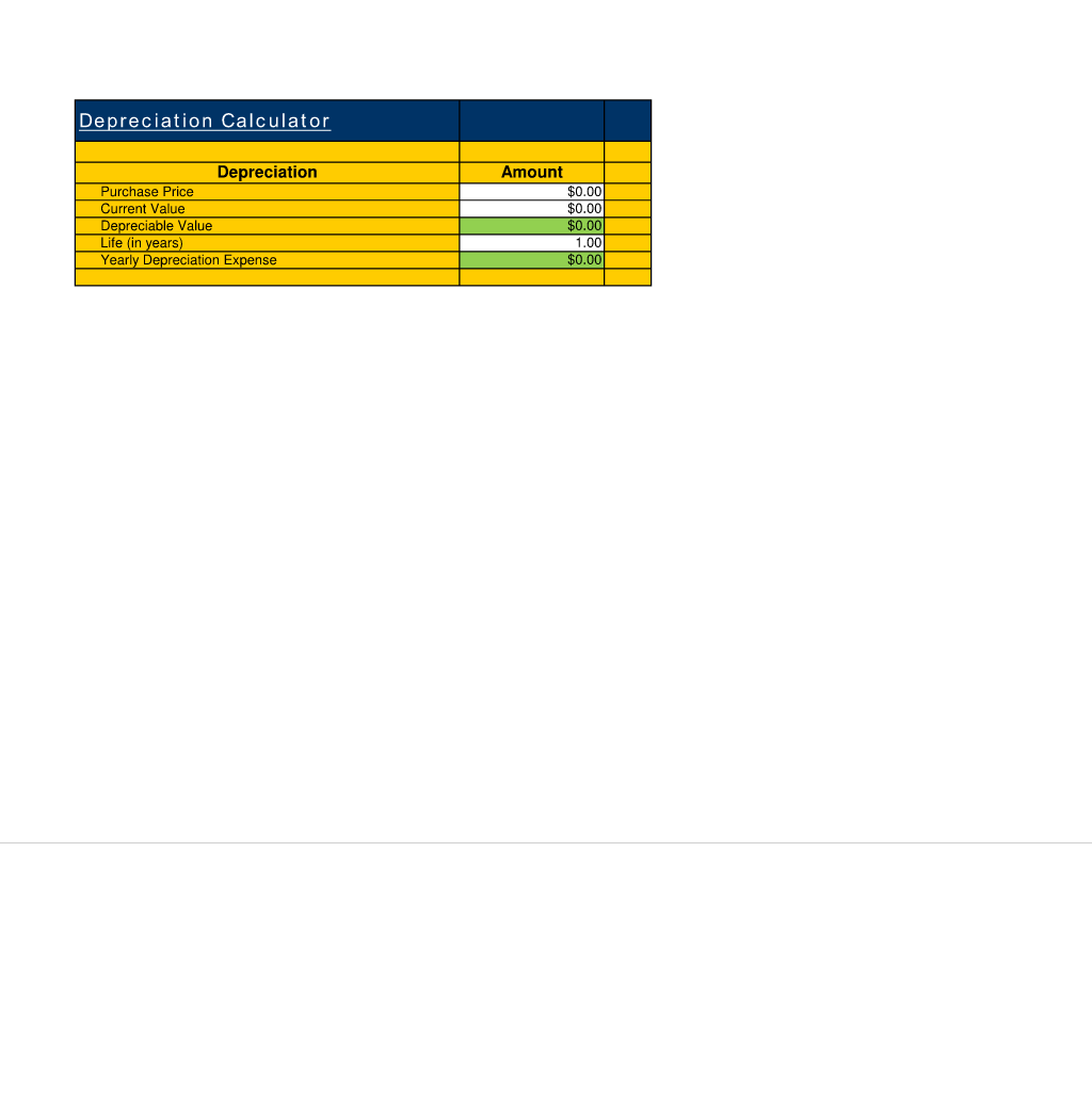 View Worksheet Sample Use the Depreciation Calculator Spreadsheet to help calculate the depreciation on equipment.
