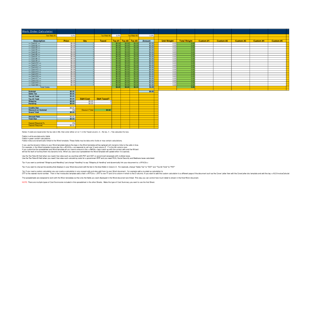 View Worksheet Sample Use the Work Order (without Deposit) Calculator spreadsheet to help calculate the costs of a project.