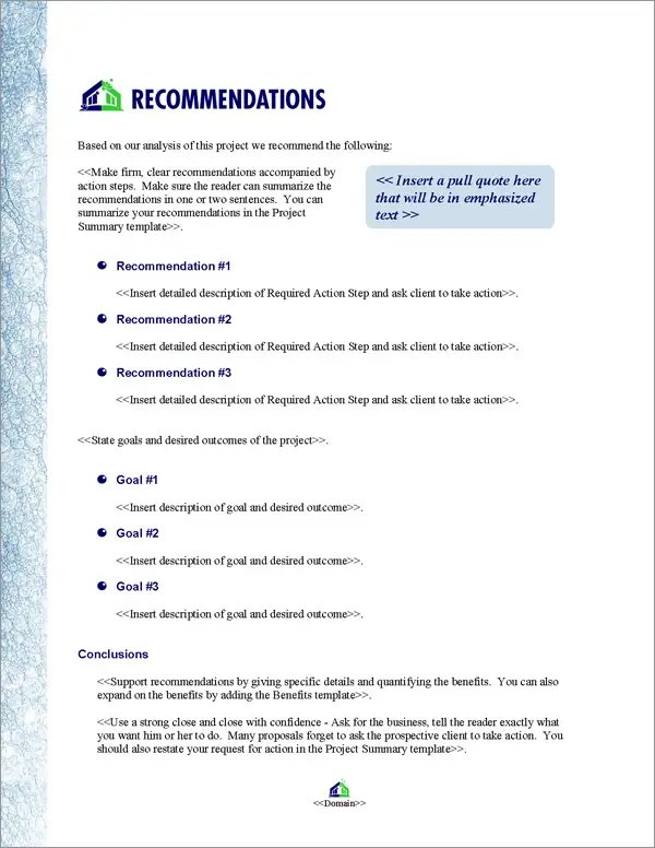 We added design elements in the Proposal Pack templates that you can easily change. You can change the size, shape, and color of the borders, fonts, tables, and other elements.