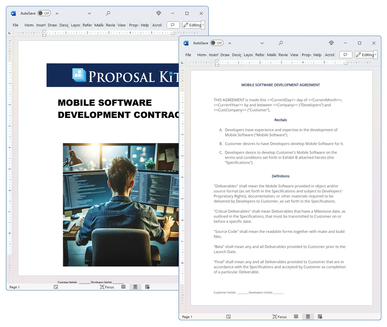 Proposal Kit can help you assemble a professional, fair manner mobile app development agreement with clear terms. Its document assembly, automated line-item quoting, AI Writer for supporting documents, and extensive template library make managing specific terms, companies' requirements, and expectations easier for both parties.