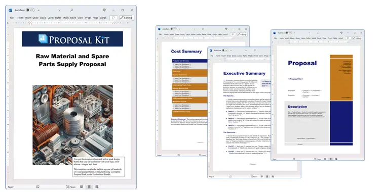Proposal Kit is a proven solution if you need to write a proposal to supply a factory with raw materials and spare parts. Proposal Kit offers a comprehensive solution with its template library and Wizard software program, which includes a line item quoting database system for creating detailed cost summaries, quotes, estimates, budgets, and other financial documents.