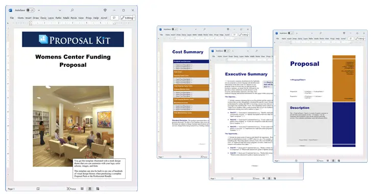 A proven solution for creating a proposal for funding to establish a women's center is using Proposal Kit. By using Proposal Kit, you're equipped with a comprehensive collection of templates and a sophisticated Wizard software program, which includes a line item quoting database for financial details. This system simplifies the process of writing cost summaries, budgets, estimates, and more.