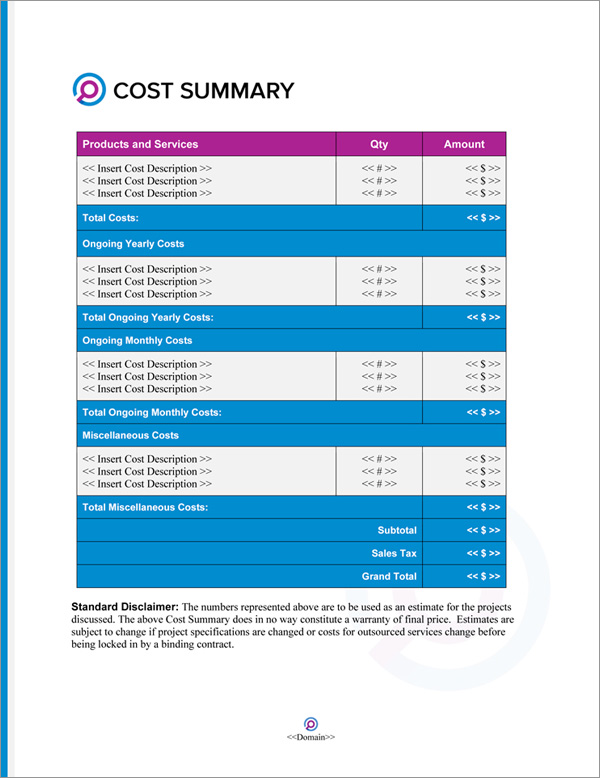 We added design elements in the Proposal Pack templates that you can easily change. You can change the size, shape, and color of the borders, fonts, tables, and other elements.
