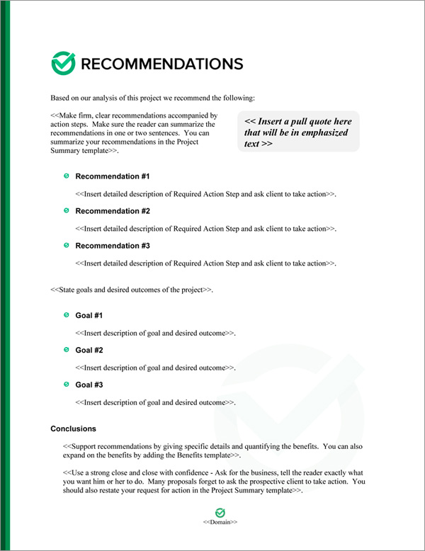 While the Proposal Kit Professional is our main product, a lower-cost option is to get a single Proposal Pack design theme such as this one and upgrade to the Professional bundle later if you need the extra contract content or more advanced software features.